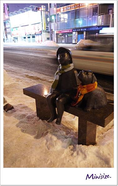一樣是打上圍巾小男孩及忠心的狗兒遠望天空