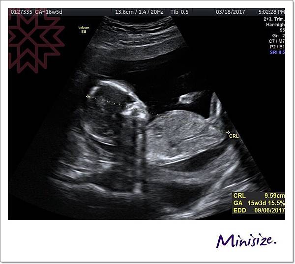 才了解到原來我的大肚皮裡面藏一個頭臀圍長9.59公分的健康寶寶
